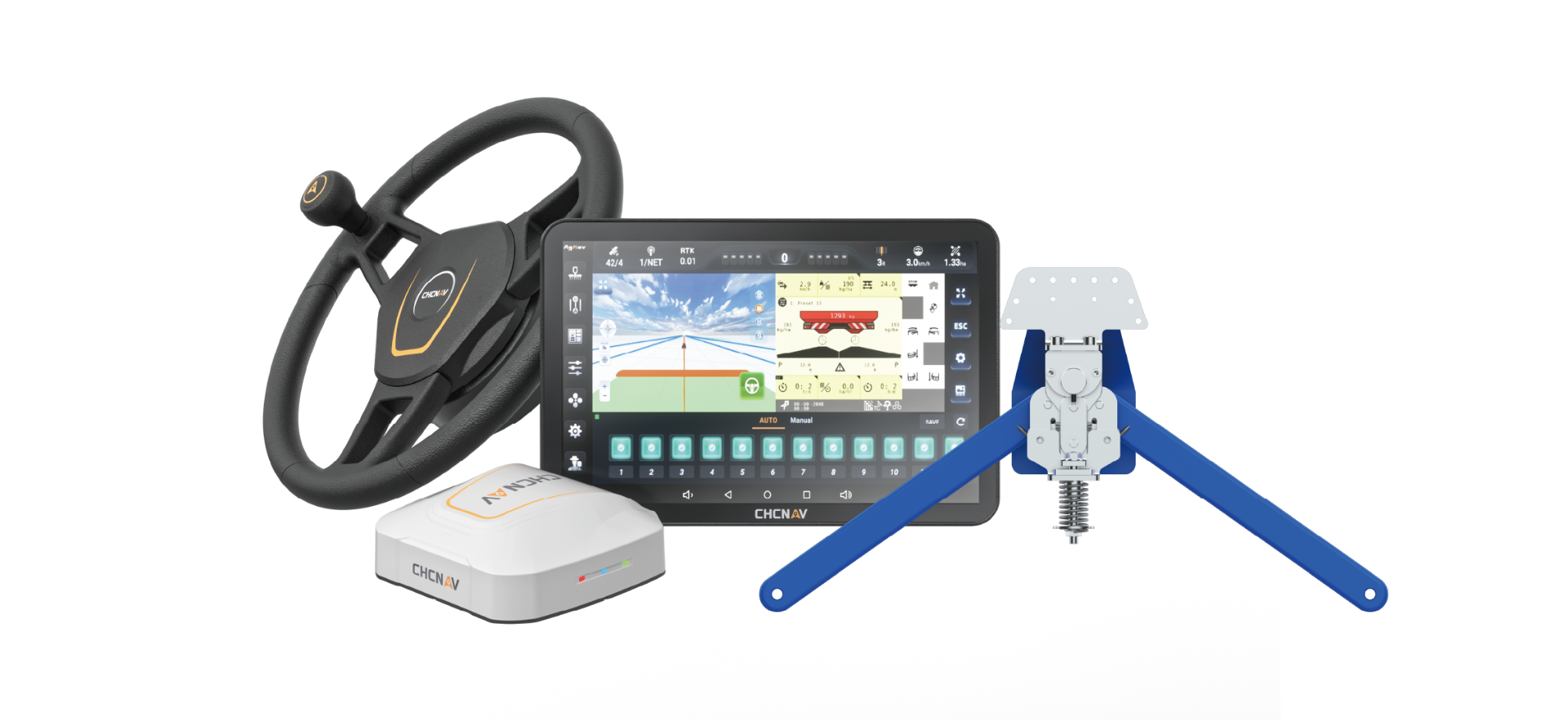 CHCNAV HG100 je navrhnutý tak, aby bol jednoducho inštalovateľný na rôzne typy zberových strojov. Intuitívne ovládanie cez kompatibilné displeje CHCNAV umožňuje rýchle nastavenie a jednoduché používanie aj bez zložitých školení.